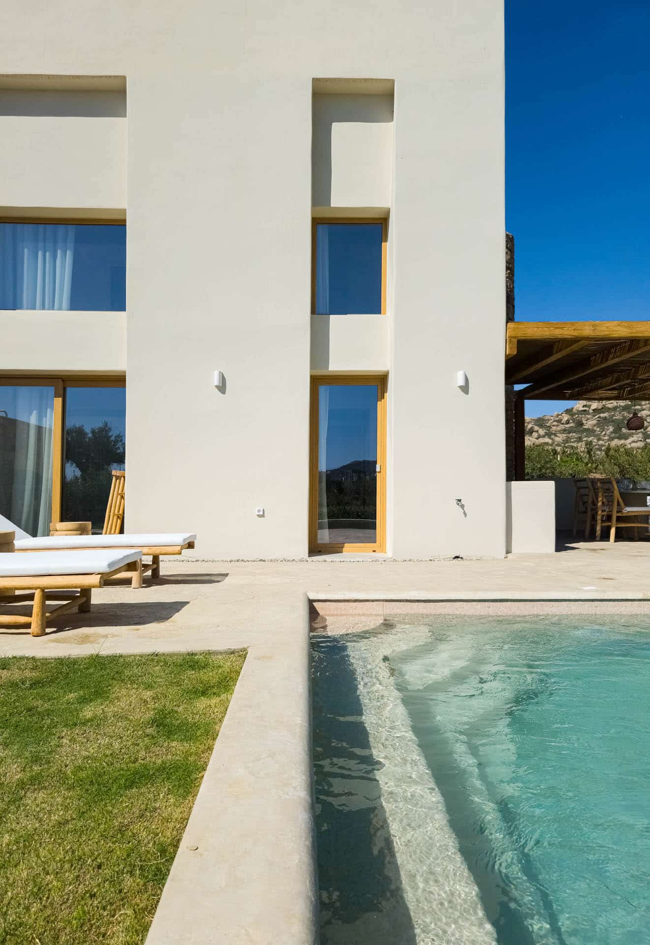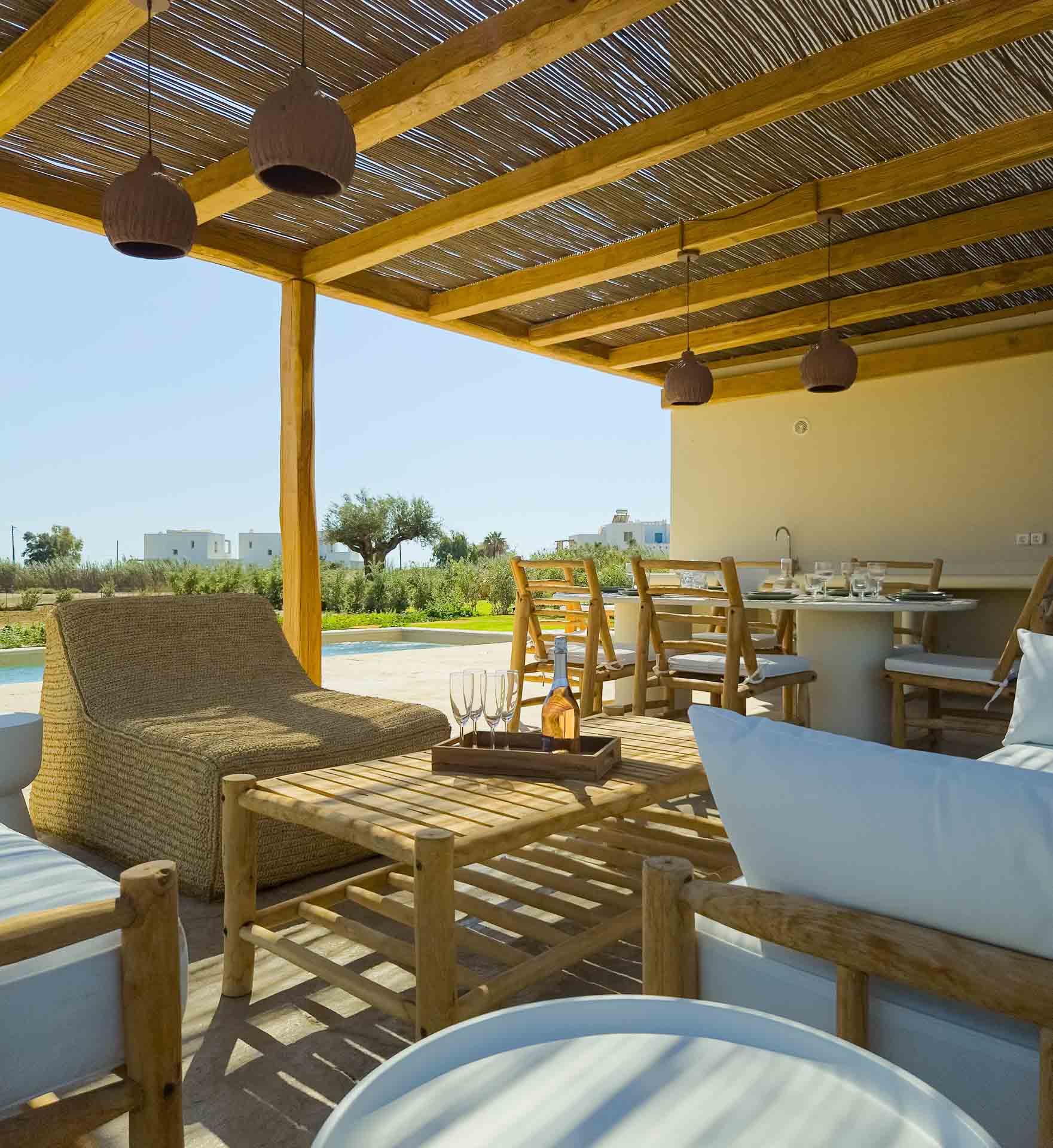 Step outside to enjoy your private oasis: a landscaped garden, shaded outdoor dining area, and refreshing swimming pool where you can unwind in total privacy under the Greek sun.